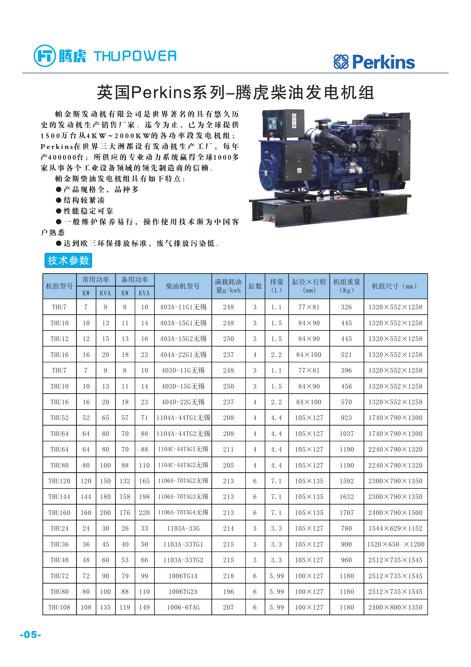 "Perkins珀金斯" 柴油机配套发电机组功率范围为: :7kW-2000kW